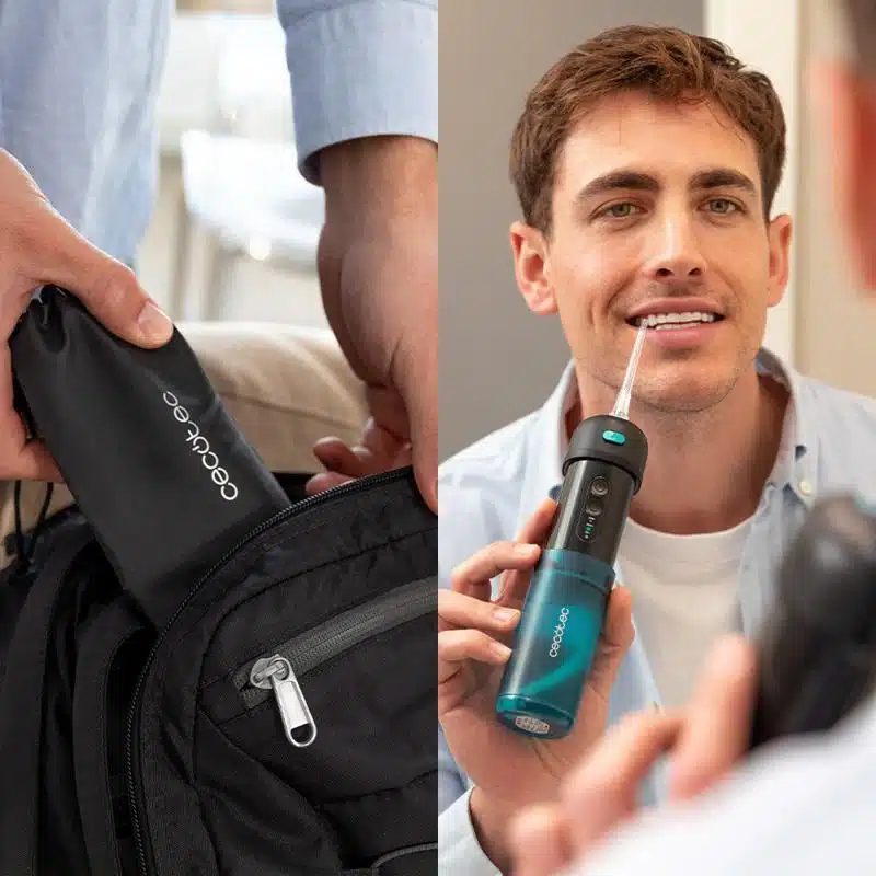 - Este irrigador de viaje cabe fácilmente en tu equipaje de mano o bolso, permitiéndote mantener tu rutina de cuidado bucal donde quiera que vayas. Tamaño reducido y diseño compacto.