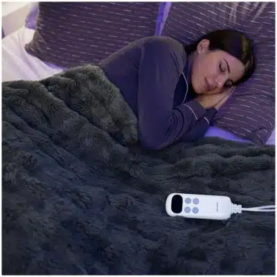 - Gran área de cobertura. Consigue un agradable confort incluso en camas individuales. Además, está fabricado con un cable extralargo para facilitar el movimiento y que puedas tumbarte de forma cómoda. Material: Faux Fur + Frannel 300 gr + 200 gr. Tamaño de 180 x 130 cm para amplias superficie