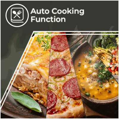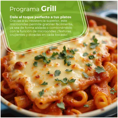 – Con el menú Auto Cooking el microondas cocinará automáticamente los alimentos. Tan solo deberás indicar el peso de estos y trabajará con los parámetros preestablecidos de temperatura y duración óptimos para cada plato.