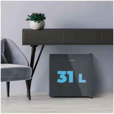Bolero CoolMarket TT 31 Dual Grey Glass E Mini frigorífico convertible en congelador con puerta de cristal gris y control de temperatura 0ºC a 5ºC y -24ºC a -16ºC. Capacidad para 31 Litros y medidas 49.6 Alto x 47.4 Ancho.