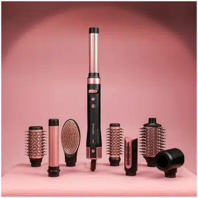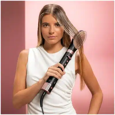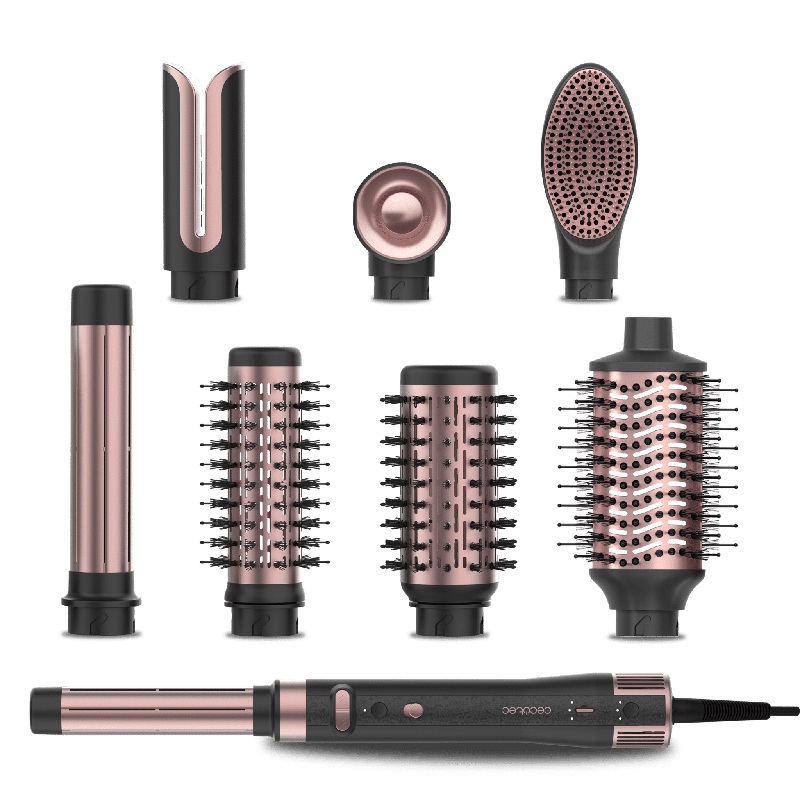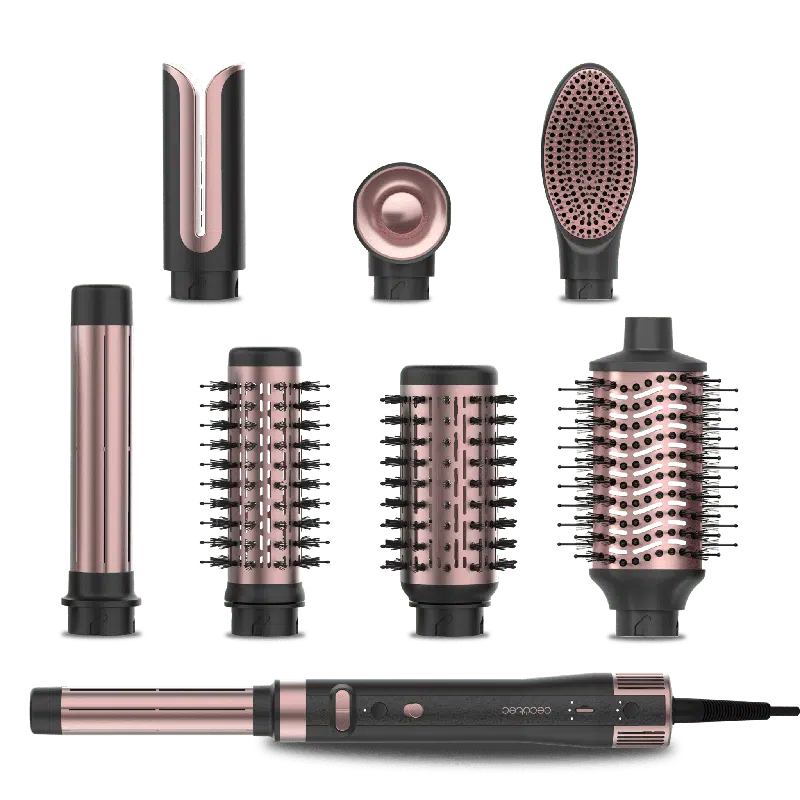 - Disfruta de la versatilidad total con el CeramicCare 8in1 AirGlam Gyro Champagne, que te permite alisar, rizar y moldear tu cabello con facilidad, adaptándose a cualquier estilo que desees. 8in1: Cabezal alisador SilkLisse, 2 cilindros rizadores con Coanda, Cepillo de 60 mm, 50 mm y Cepillo de 38 mm.