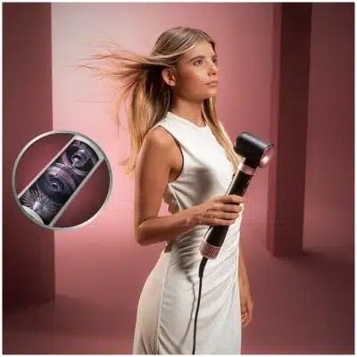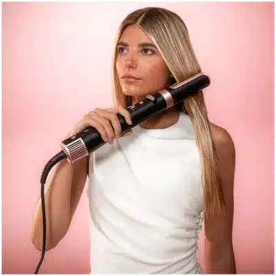 - El aire sigue la superficie de los dos cilindros rizadores, enrollando el cabello alrededor del moldeador y creando rizos perfectos sin esfuerzo, para el lado derecho e izquierdo. Tecnología CoandAir.