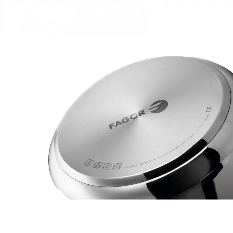 La olla a presión Fagor Clásica de 6 L es un utensilio de cocina diseñado para ofrecer cocción rápida, segura y eficiente. Fabricada en acero inoxidable de alta calidad, combina resistencia, durabilidad y un acabado brillante que mantiene su aspecto con el paso del tiempo. Su capacidad de 6 litros es ideal para familias medianas, permitiendo preparar guisos, arroces, verduras y carnes en menor tiempo, conservando el sabor y los nutrientes de los alimentos.