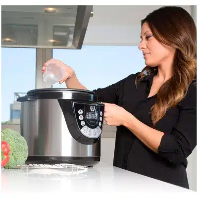 La memoria EPROM conserva los ajustes incluso en caso de corte eléctrico, mientras que sus 14 sistemas de seguridad aseguran un uso fiable y tranquilo en todo momento. Su diseño intuitivo y pantalla digital facilitan el control de cada receta.