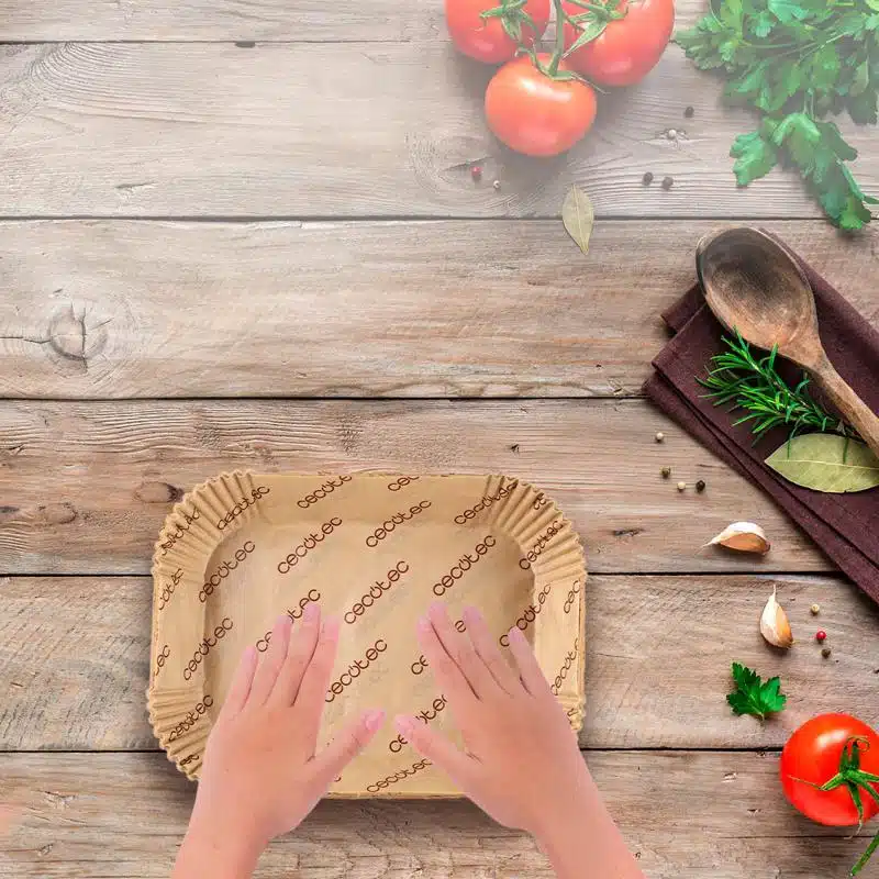 - Facilita la limpieza de la cubeta. El papel funciona como barrera protectora y evita que al cocinar se manche la cubeta, permitiendo que la limpieza posterior sea fácil y rápida.