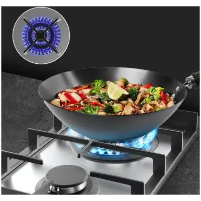 - Sabor perfecto a fuego intenso. Con quemador WOK de triple corona que permite una distribución uniforme del calor, ideal para cocinar platos asiáticos y otras recetas que requieren un calor intenso y uniforme.