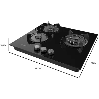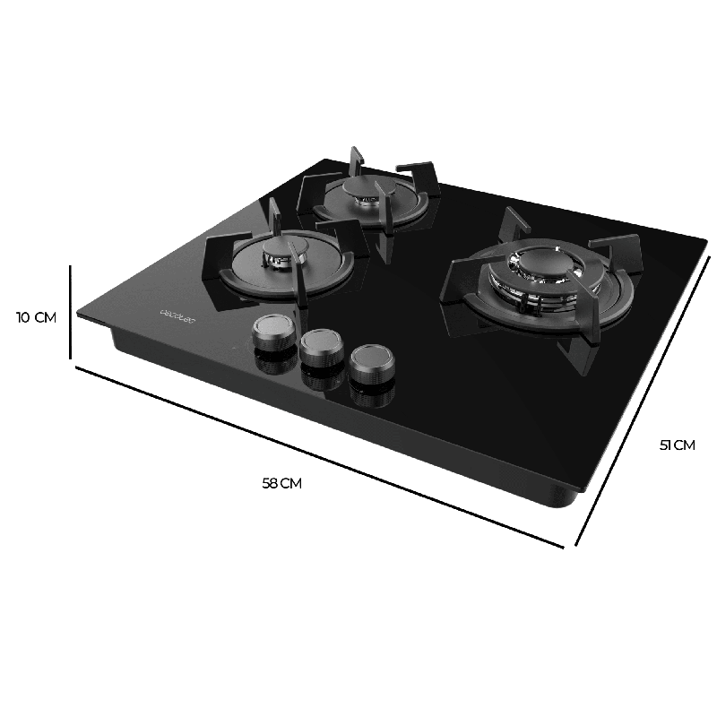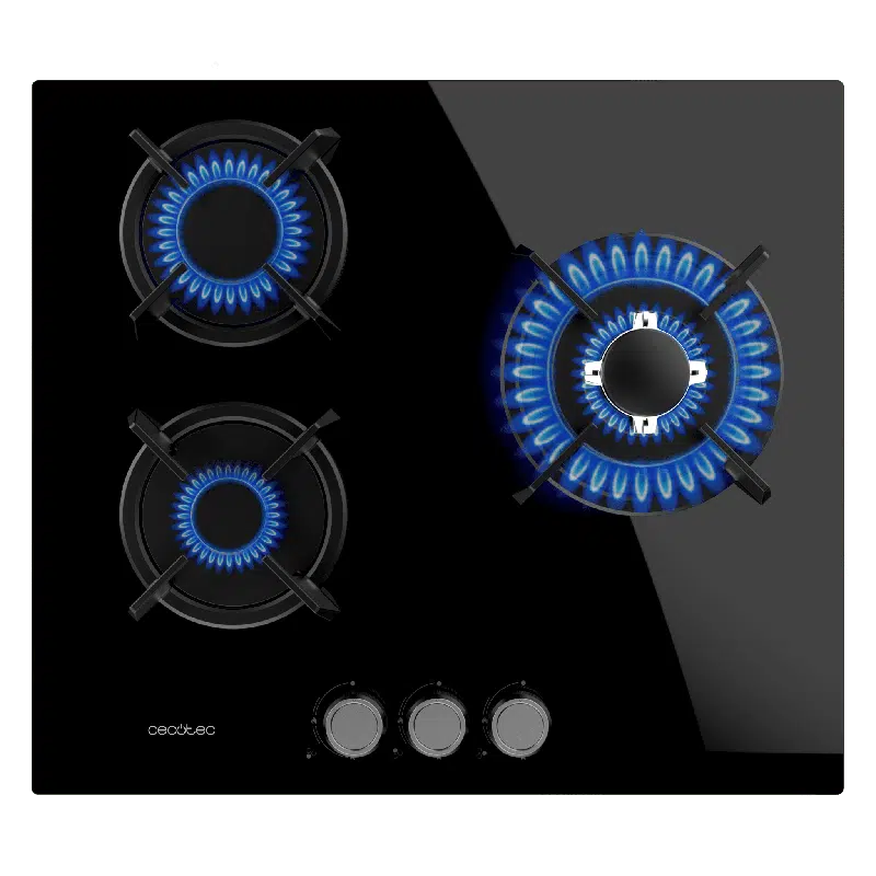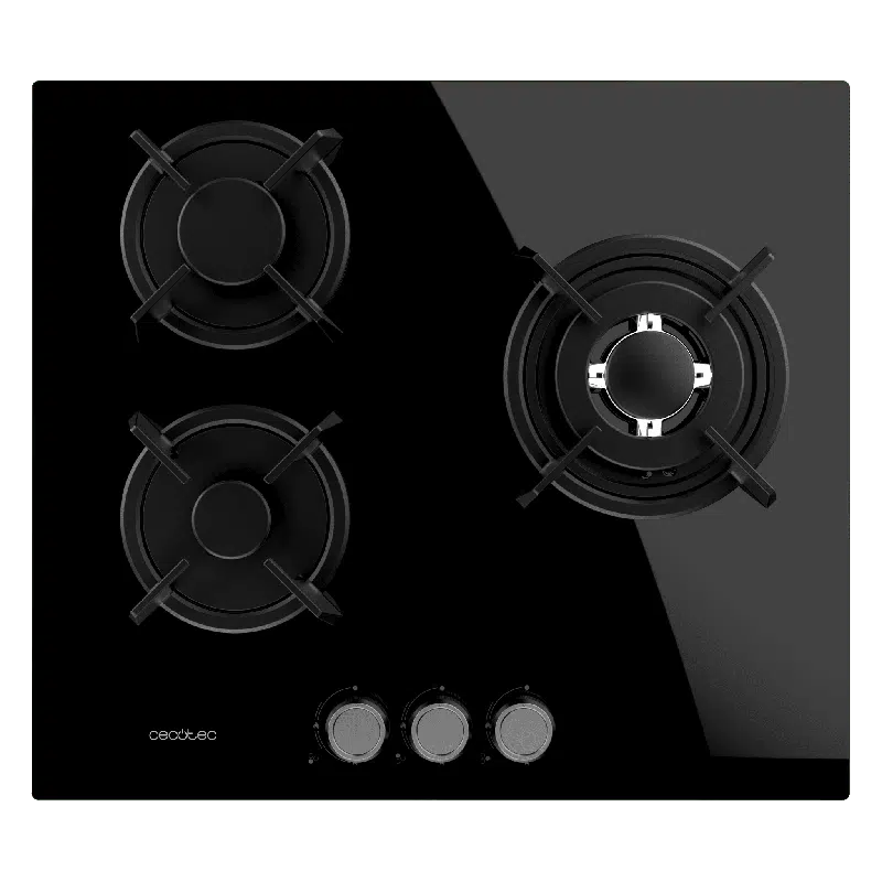• 3 Fuegos, acabado en cristal negro con parrillas individuales circulares de hierro fundido. Los acabados de alta calidad hacen que el rendimiento y la durabilidad de estas parrillas resisten cualquier tipo de cocinado.