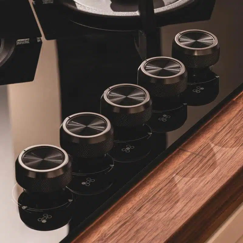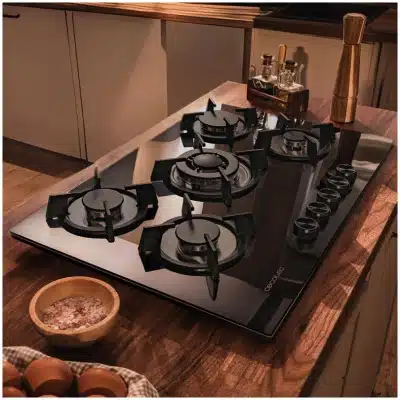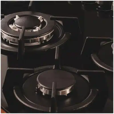 • 5 Fuegos, acabado en cristal negro con parrillas individuales circulares de hierro fundido. Los acabados de alta calidad hacen que el rendimiento y la durabilidad de estas parrillas resisten cualquier tipo de cocinado.