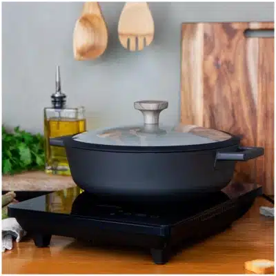 Full Crystal Onyx Heat Placa de inducción digital con vidrio de seguridad y control táctil. Color negro.