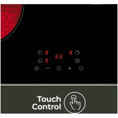 Estética cristal negro y sistema de control táctil con 9 niveles de potencia de cocción y funciones para obtener el mayor rendimiento y seguridad en el proceso de cocción.