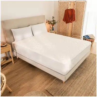 - Este protector de colchón está fabricado con tejido superior e inferior de 100% algodón, asegurando una experiencia de descanso óptima con una sensación de frescura y comodidad inigualable.