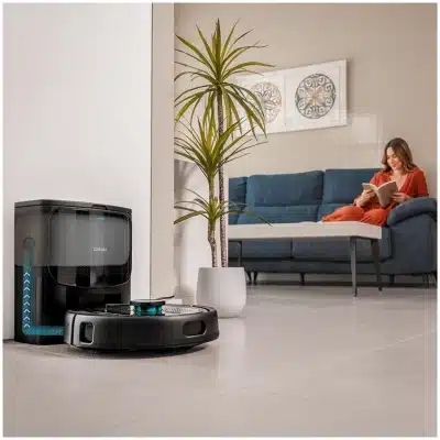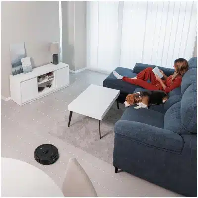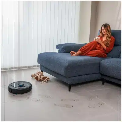 - Detección ultrasónica de alfombras. El robot detecta cuando hay una alfombra y sube la potencia de forma automática para limpiar con la máxima precisión y, si está en modo fregado, la esquiva para no mojar el tejido de la alfombra con sus mopas.