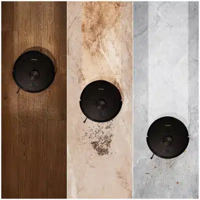 - Navega y limpia en zonas estrechas y bajas. Diámetro de 310 mm y altura de 100 mm que le permite llegar a zonas a las que otros robots no pueden acceder, pudiendo navegar con facilidad en espacios reducidos, como el hueco de las sillas, y con su altura reducida puede limpiar en zonas bajas como el hueco del sofá.