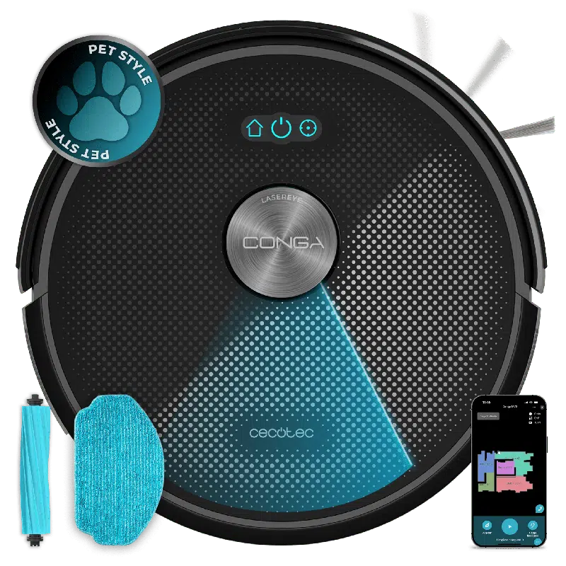 - Limpieza personalizada y precisa con mapa interactivo. Navegación láser: tecnología avanzada que crea un mapa interactivo de tu hogar, permitiendo una limpieza exacta y personalizada de todos los espacios, sin importar la cantidad de luz ambiental. Su trazado de mapas rápido y preciso, junto con un posicionamiento exacto, reduce los errores de navegación y asegura una identificación perfecta de cada área.