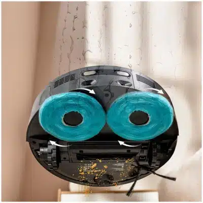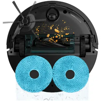 - Tecnología SpinUp. Aspira con precisión y cuida las superficies delicadas. Gracias a la tecnología SpinUP, sus mopas se elevaban hasta 8 mm, evitando que la humedad entre en contacto con alfombras o permitiendo aspirar en habitaciones o superficies donde no se necesita fregado.