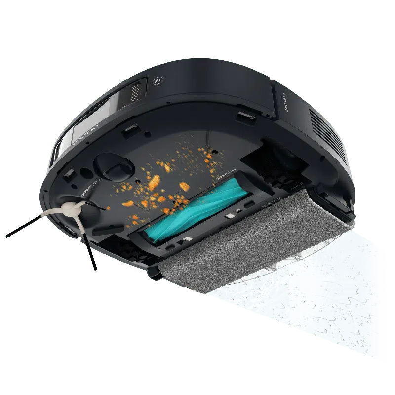 - Tecnología Wet&Protect. Su fregado inteligente adapta su mopa bimaterial según la superficie. Friega en profundidad con su cara súper absorbente y, cuando detecta una alfombra, activa el modo CarpetCare y selecciona la cara lisa de la mopa para protegerlas.