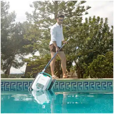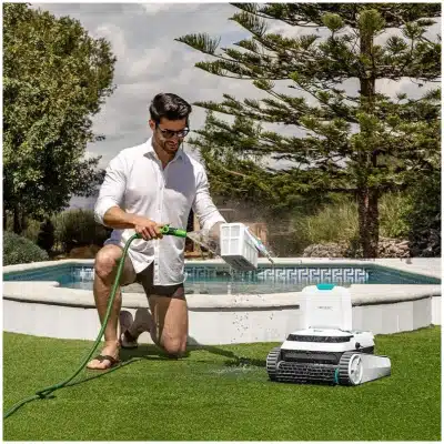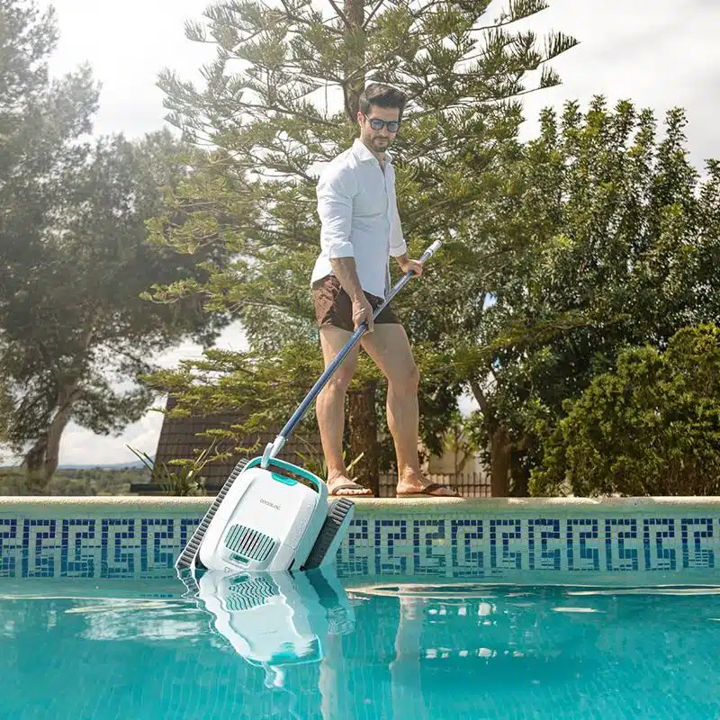 • Limpieza profunda sin cables. Olvídate de los enredos de cables y mangueras y disfruta de tu piscina, incluso mientras el robot está en funcionamiento.