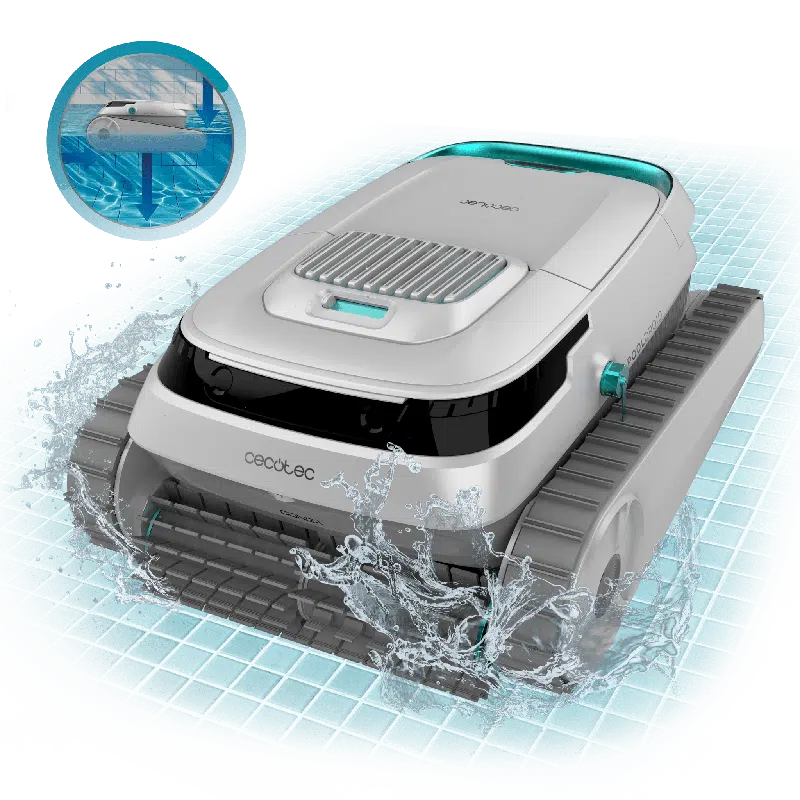 • Limpia el fondo, paredes y línea de flotación. Robot limpiapiscinas todoterreno, que permite limpiar toda la superficie, desde la línea de flotación hasta el fondo, todo con un solo clic.