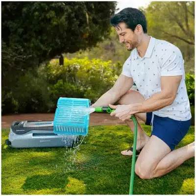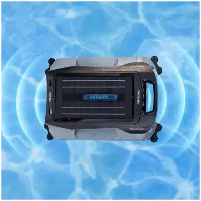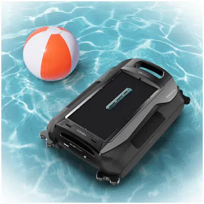 - Limpia la línea de flotación con un clic. Robot limpiapiscinas inalámbrico que elimina la suciedad que flota sobre la superficie, incluso mientras te bañas.