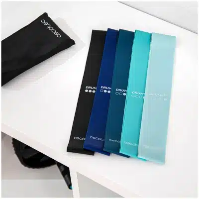 DrumFit Resistance Band Set Set de 5 cintas elásticas de resistencia de látex con distintos niveles.
