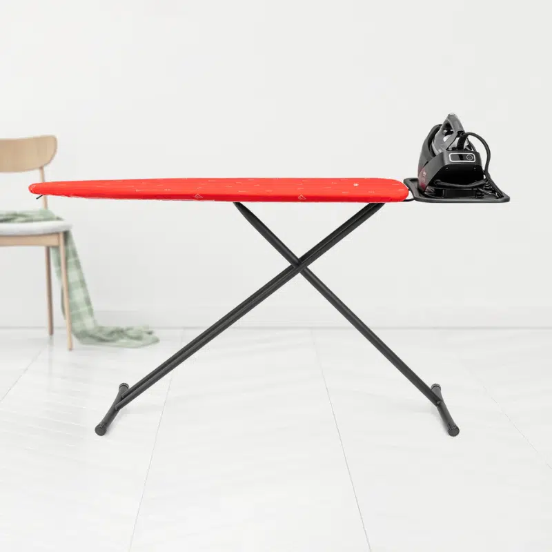 Su estructura robusta incorpora un sistema de estabilidad reforzada, evitando movimientos o vibraciones mientras se plancha. Además, cuenta con altura regulable, lo que permite ajustarla fácilmente a la postura ideal para cada usuario y reducir el esfuerzo en la espalda.