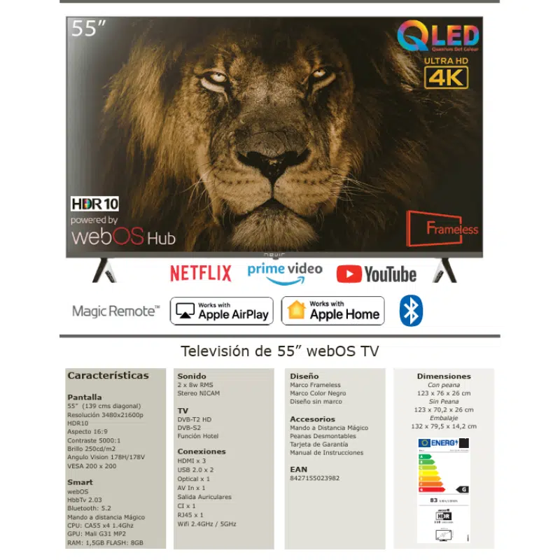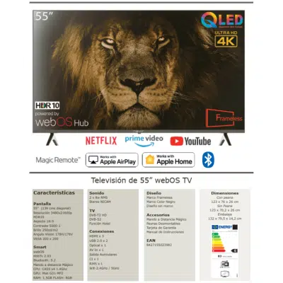 Televisor Nevir QLED 55″ Ultra HD 4K Smart TV weBOS