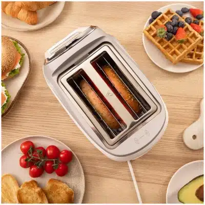 - Función vistazo rápido durante el tostado. Verifica el estado del pan en tiempo real sin interrumpir el proceso, asegurando que esté tostado según tus preferencias sin necesidad de detener la máquina.