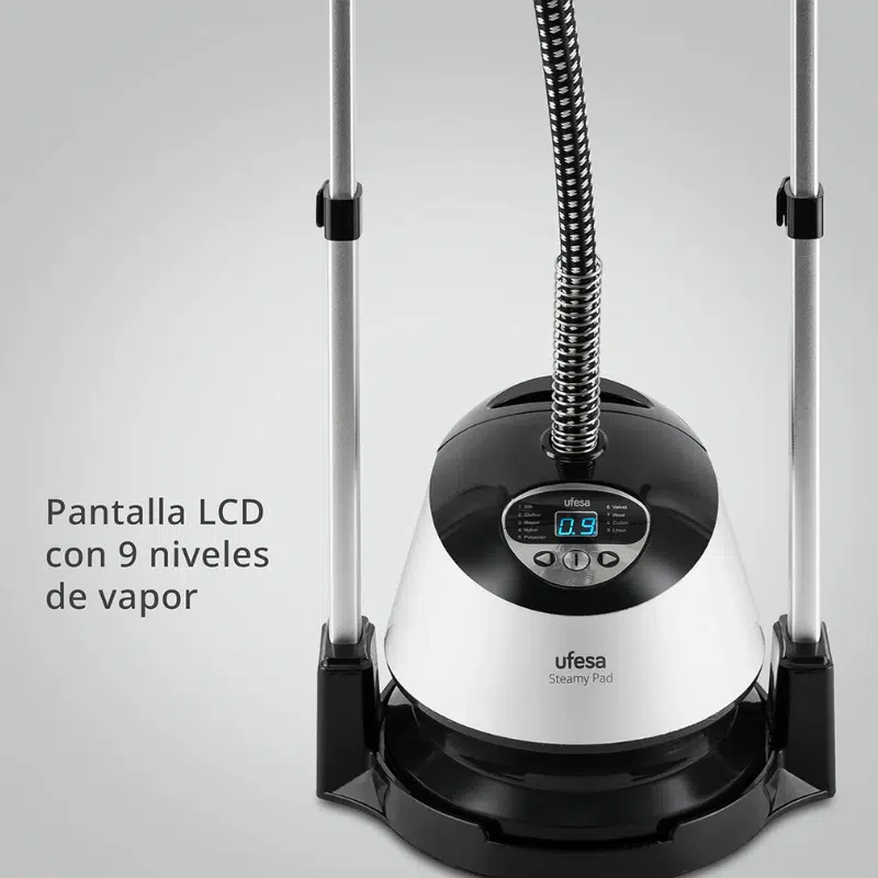 El Steamy Pad incorpora una pantalla LCD digital con 9 niveles de vapor ajustables, lo que permite adaptar la intensidad según el tipo de tejido. Desde seda y prendas delicadas hasta algodón grueso o lino, podrás seleccionar el nivel adecuado para garantizar un tratamiento seguro y eficaz.