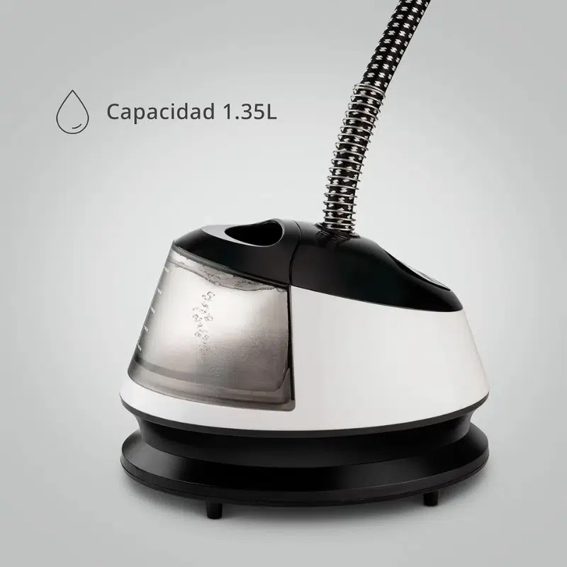 Su depósito de agua de 1,35 litros ofrece hasta 40 minutos de vapor continuo, reduciendo la necesidad de recargas frecuentes y facilitando el planchado de varias prendas en una sola sesión. Es perfecto para mantener impecable toda la colada o para preparar la ropa antes de una ocasión especial.