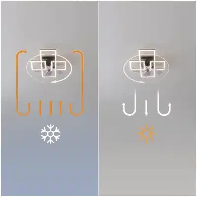 • Invierno/verano: el ventilador dispone de un sistema de inversión de giro del motor para realizar la función verano/invierno. Al girar en un sentido, podrás disfrutar de una agradable brisa en verano y, en sentido contrario, el ventilador impulsará el aire caliente hacia el suelo y complementará tu sistema de calefacción en invierno.