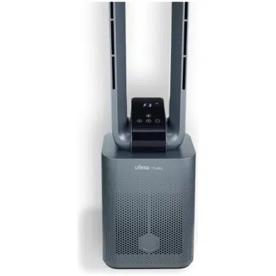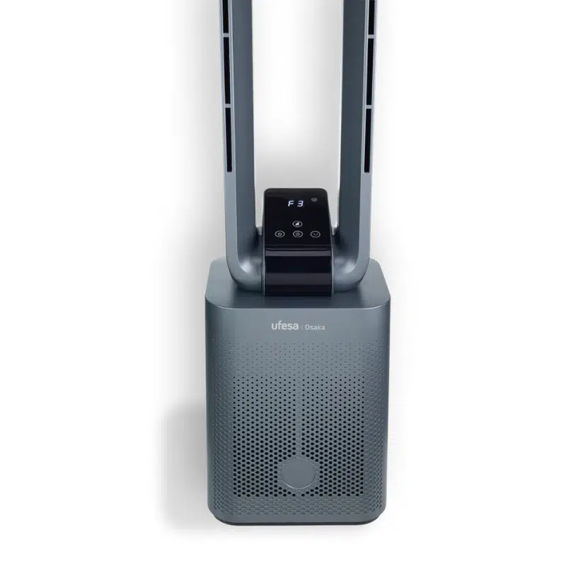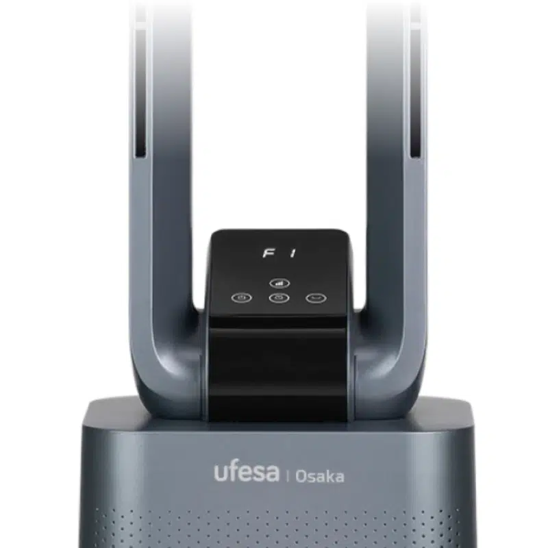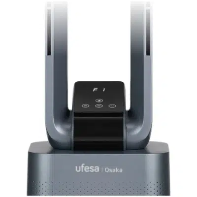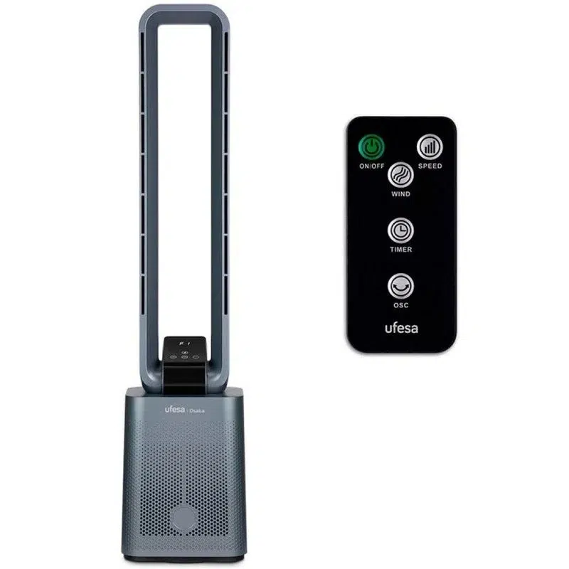 El ventilador de torre sin aspas Osaka Ufesa es una solución avanzada y elegante para combatir el calor en el hogar o la oficina con estilo moderno y rendimiento eficiente. Gracias a su diseño sin aspas, proporciona un flujo de aire suave, continuo y silencioso, mejorando el confort sin el ruido ni las turbulencias tÃpicas de los ventiladores tradicionales, lo que lo hace perfecto incluso para dormitorios o estancias donde se busca tranquilidad y frescor.