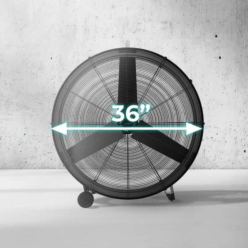 ProIndustry 3600 Ventilador de Suelo Industrial de 36” con Potencia de 360 W, 3 Velocidades, Aspas de Aluminio, Alta Seguridad y Fácil Transporte.