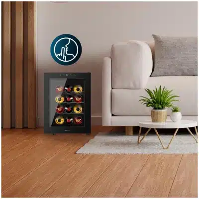 - Capacidad para 12 botellas. Tamaño compacto ideal para conservar en perfectas condiciones tu selección de vinos favorita.