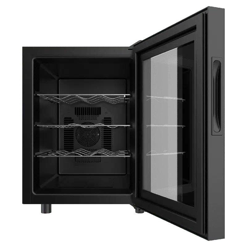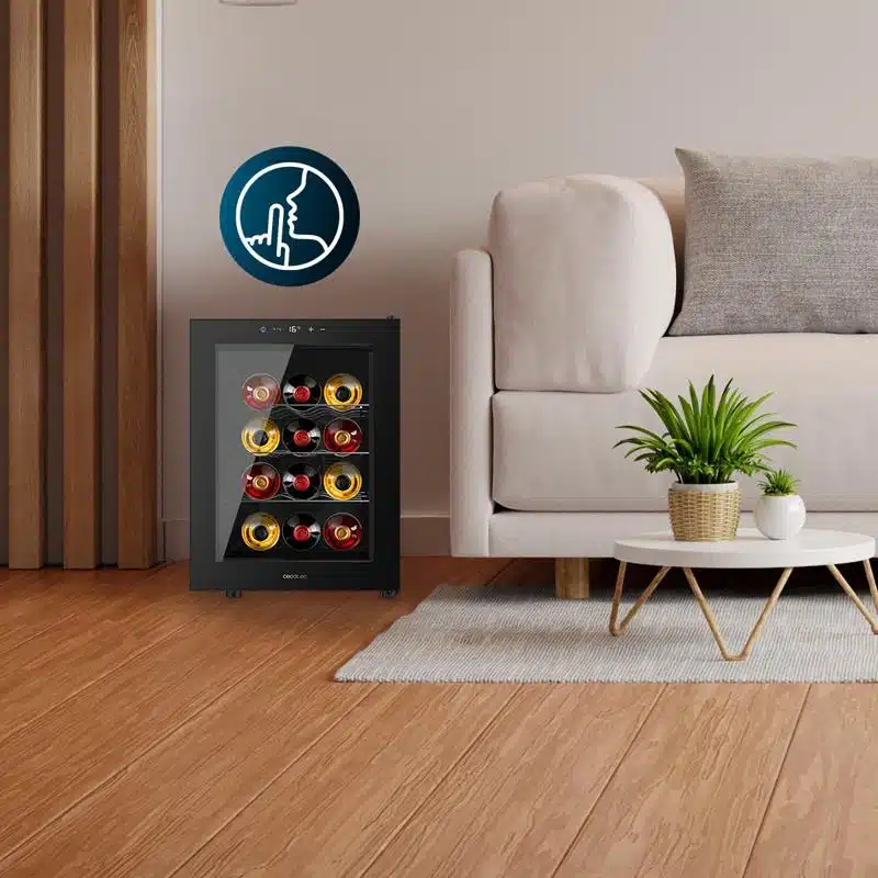 - Funcionamiento silencioso y sin vibraciones. Sistema termoeléctrico: ofrece un rendimiento más silencioso que las vinotecas con compresor, emitiendo tan solo 35 dB y además evita posibles vibraciones.
