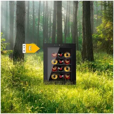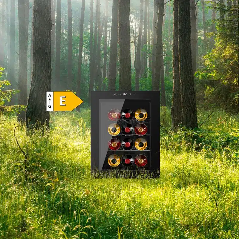 Bolero GrandSommelier 1255 CoolCrystal Vinoteca Termo.eléctrica, Capacidad 12 Botellas, Silenciosa 35dB, Temperatura 8 a 18ºC, Humedad 50%-80%, Estantes Metálicos, Control Táctil, Clase E, Luz LED, Negra.