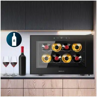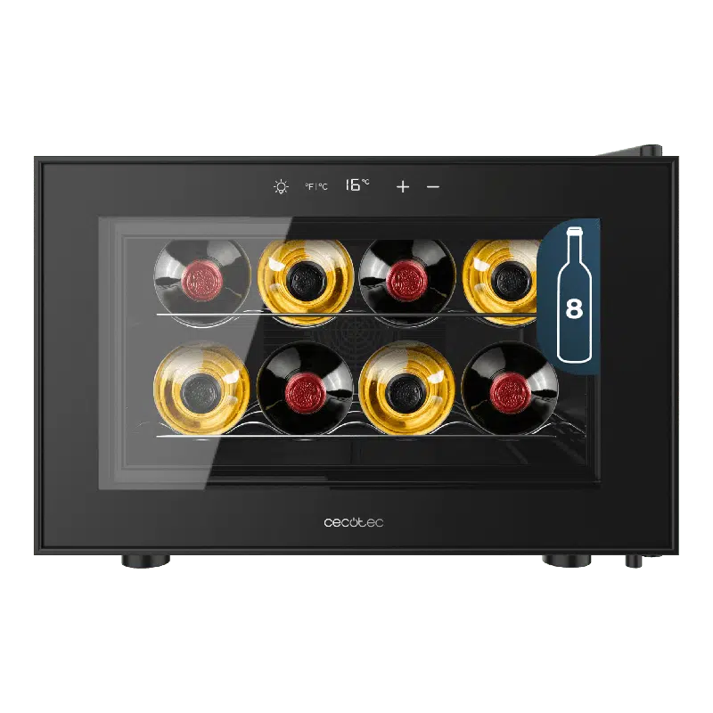 - Capacidad para 8 botellas. Tamaño compacto ideal para conservar en perfectas condiciones tu selección de vinos favorita.