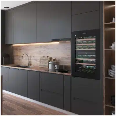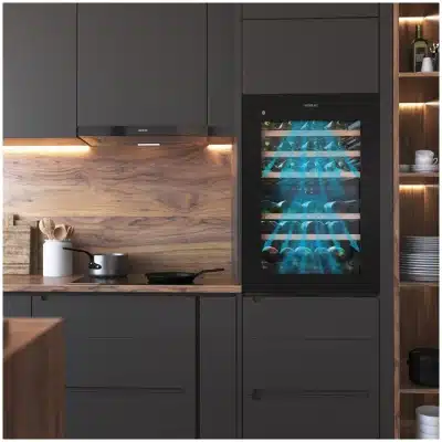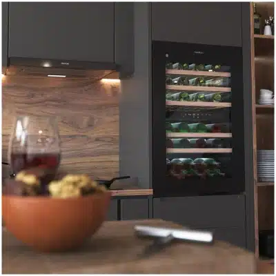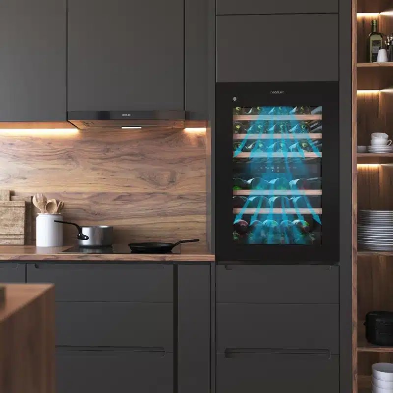 - Vinoteca integrable: sistema que permite integrarla en una columna y que encaje totalmente en el mobiliario de tu cocina.