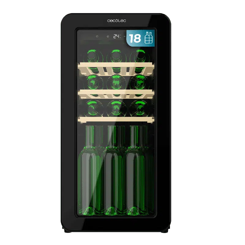 - Almacena todas tus botellas. Con su compacto tamaño es capaz de albergar una amplia selección de 18 botellas de tus vinos favoritos sin apenas ocupar espacio en la estancia en la que la sitúes.
