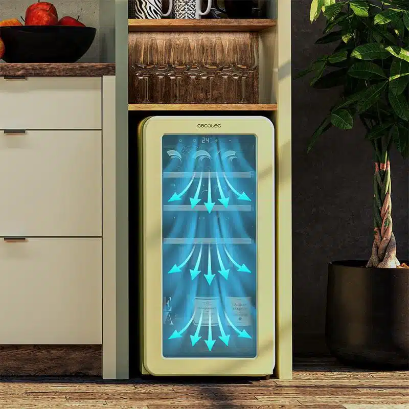 - Visualiza cada rincón. La luz LED interior proyecta una tenue iluminación interior, suficiente para dar claridad y visibilidad y que puedas encontrar fácilmente la botella que quieras.