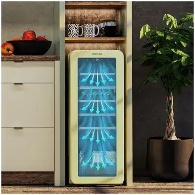- Visualiza cada rincón. La luz LED interior proyecta una tenue iluminación interior, suficiente para dar claridad y visibilidad y que puedas encontrar fácilmente la botella que quieras.
